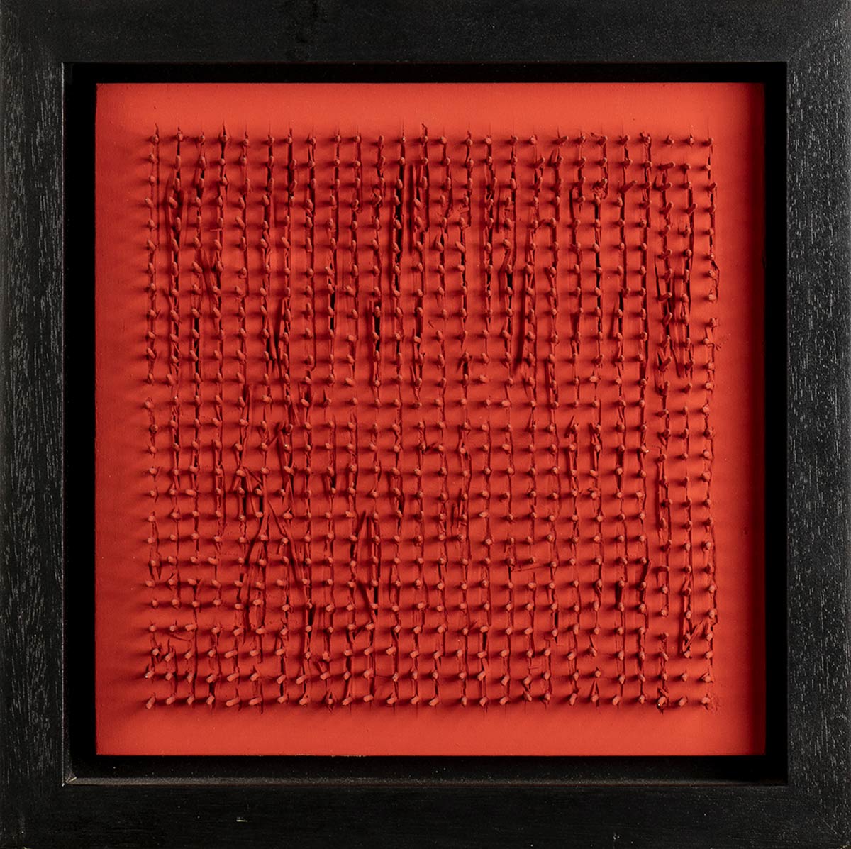 Chiodi e acrilico su tavola, 30,5 x 30,5 cm