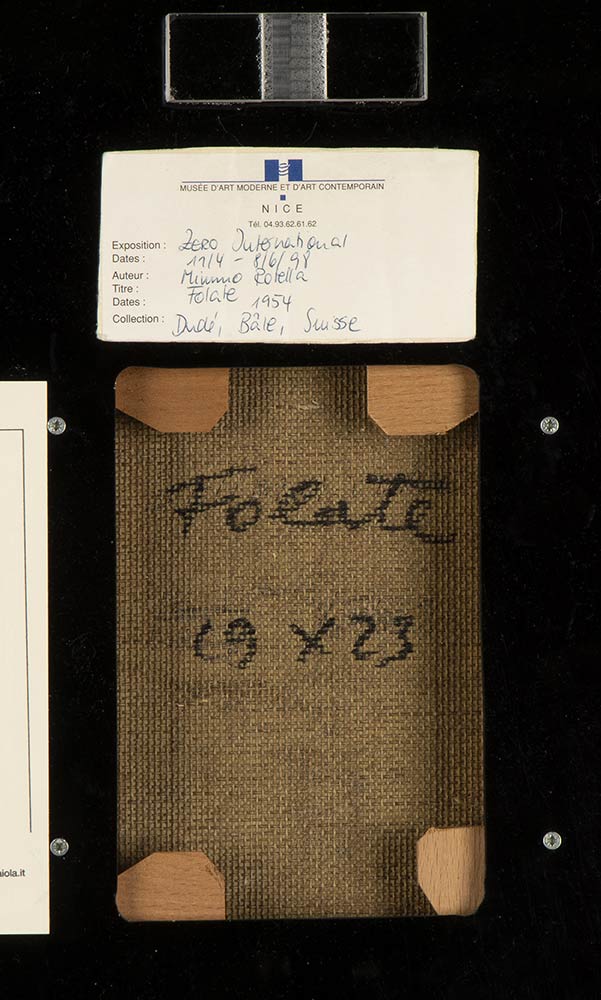 Firmato e datato in basso a destra "Rotella, 54" al retro etichetta del Musée D’Art Moderne et Contemporain di Nizza;