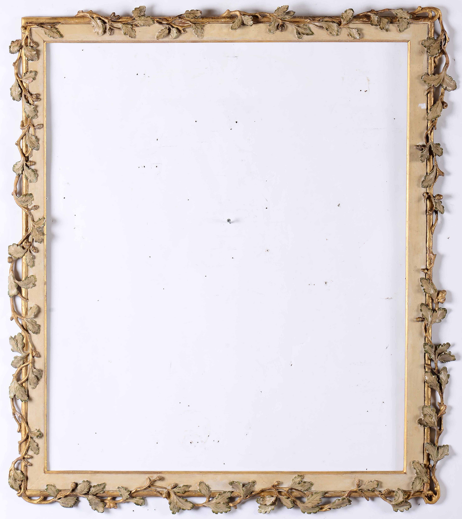 Due cornici in legno laccato e dorato intagliate con tralci di vite. Fine XVIII secolo, cm 95x78