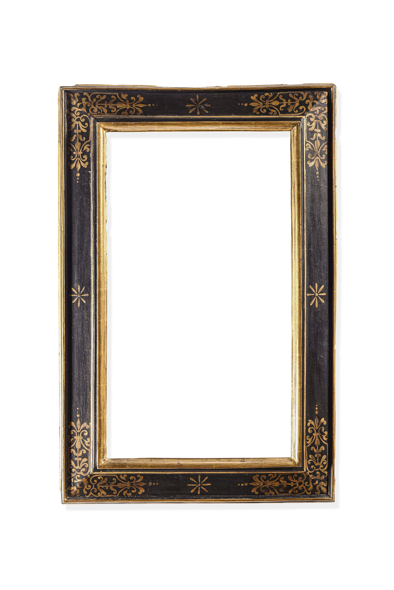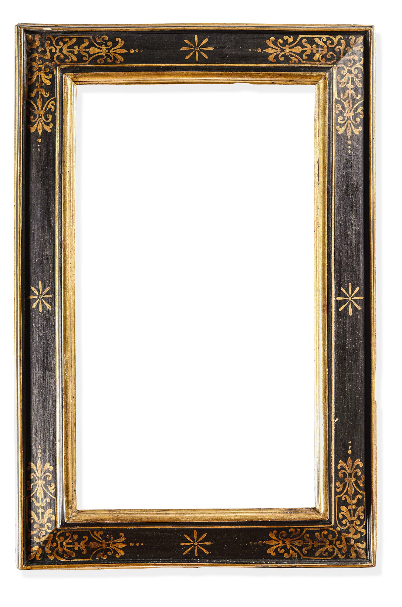 Coppia di cornici a cassetta in legno ebanizzato e dorato. Toscana XVII secolo