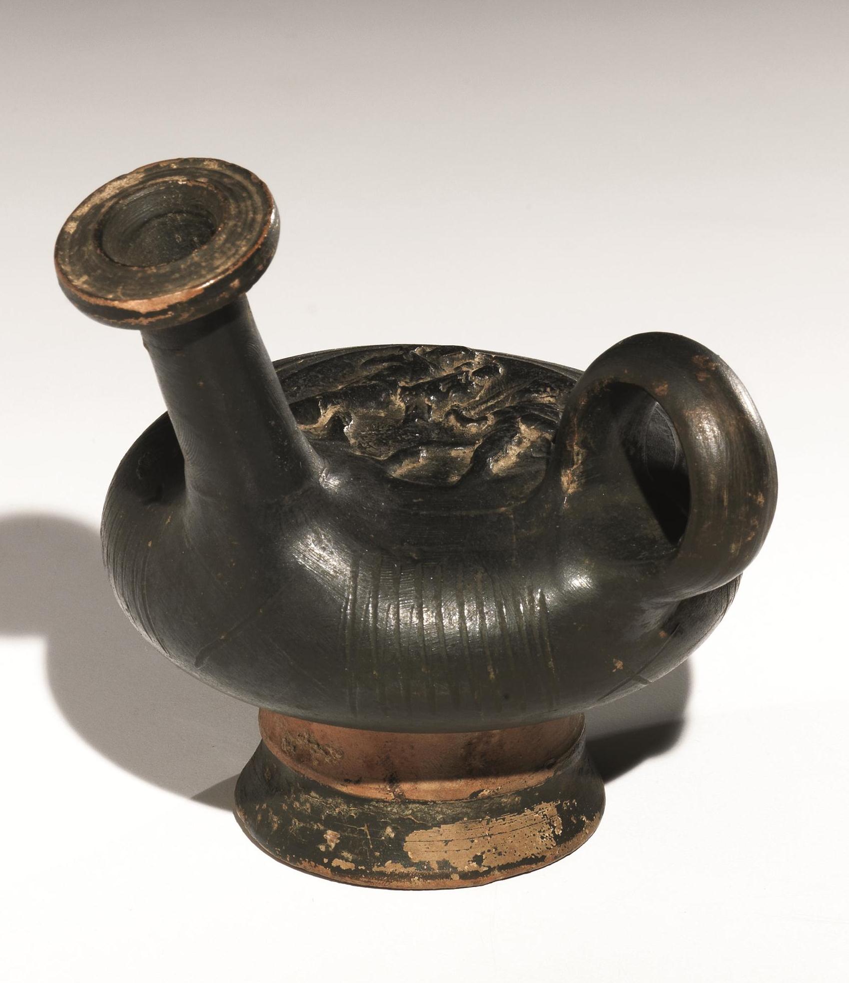 Guttus a vernice nera, alto piede cilindrico sagomato, serbatoio globulare