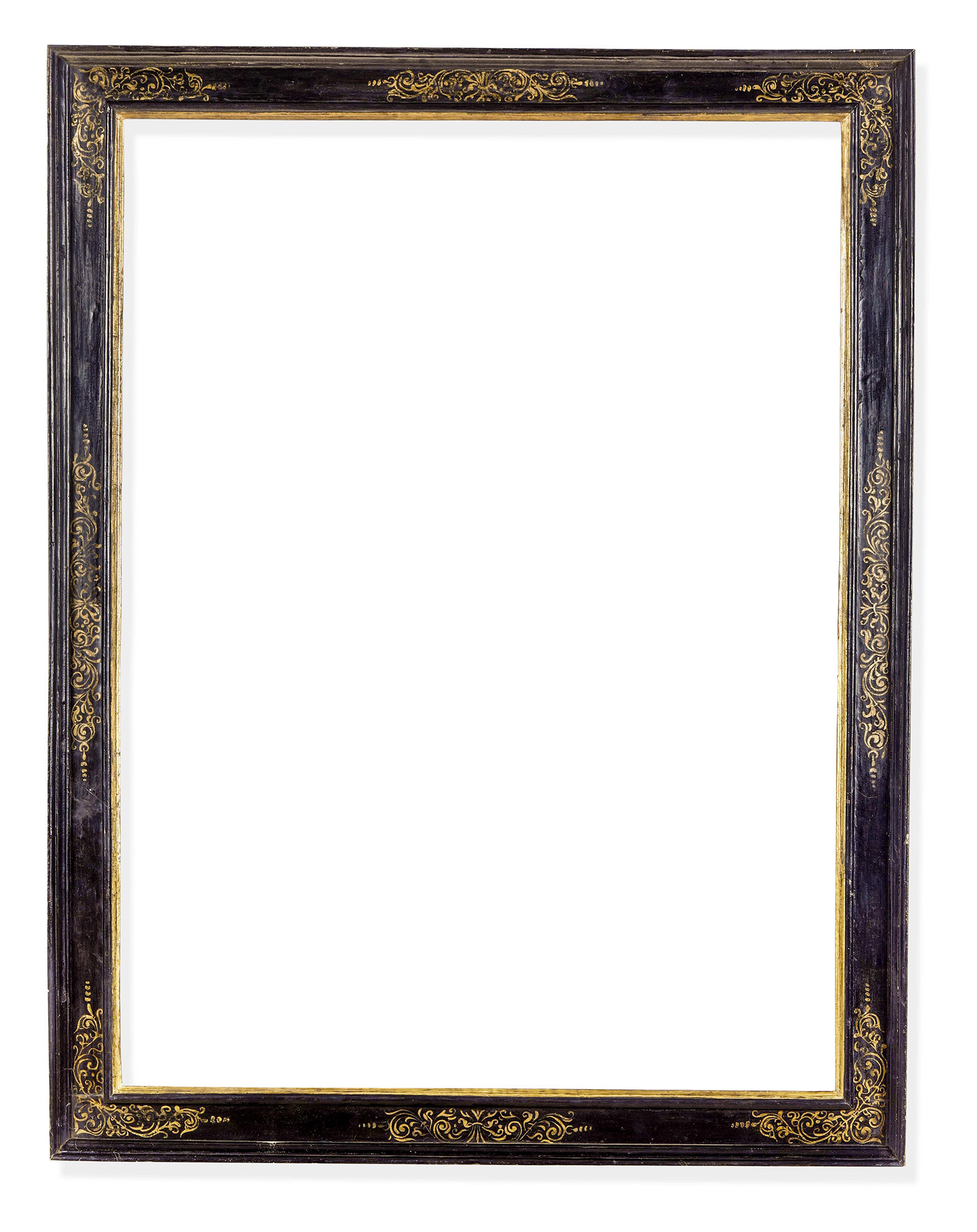 Cornice a cassetta in legno ebanizzato con racemi dorati. Italia centrale XVI secolo, cm 164x127 luce cm 142x105