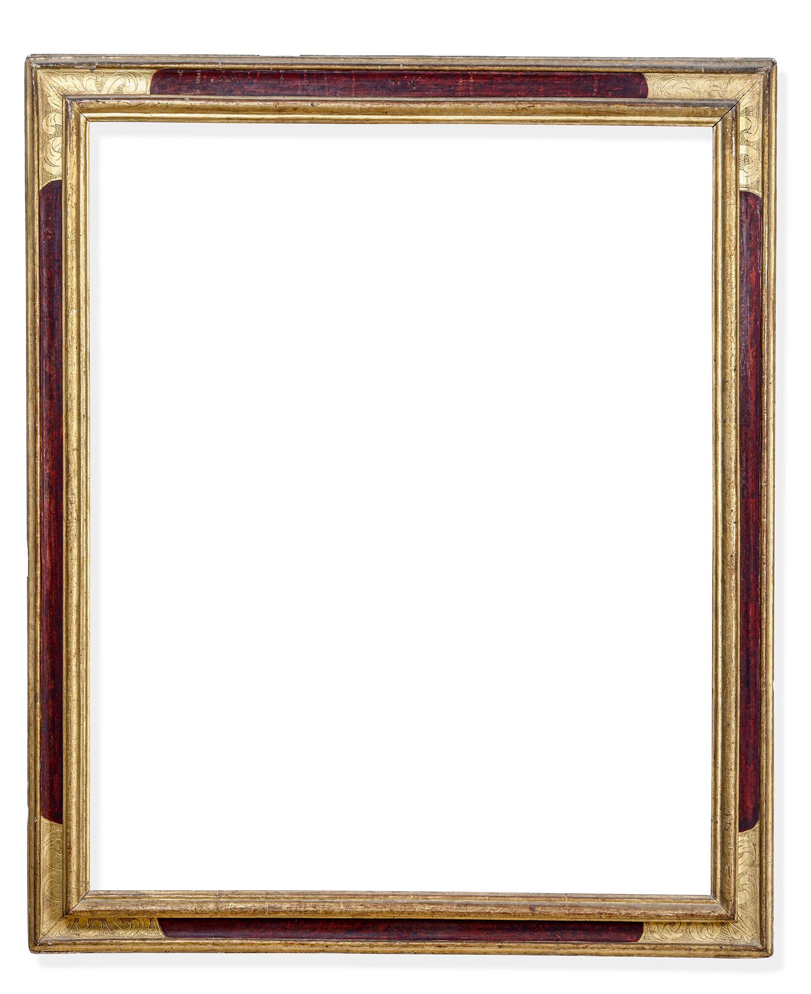 Cornice in legno intagliato, laccato e dorato. Marche XVII secolo, cm 162x134 luce cm 137,5x111