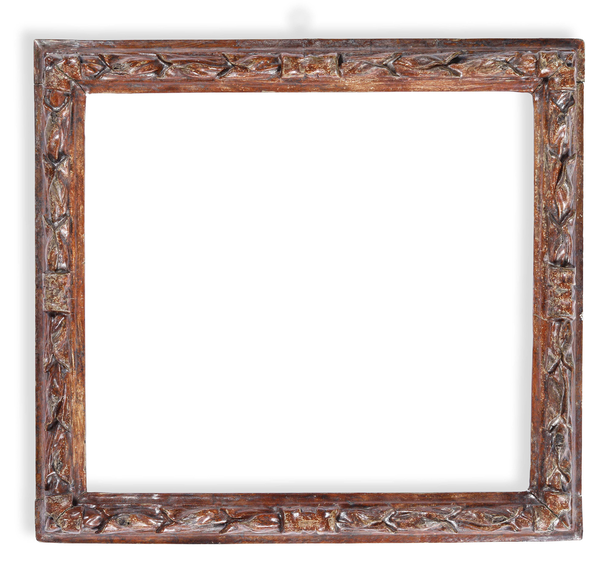 Cornice in legno intagliato. Emilia XVII secolo, cm 59x65 luce cm 47x53