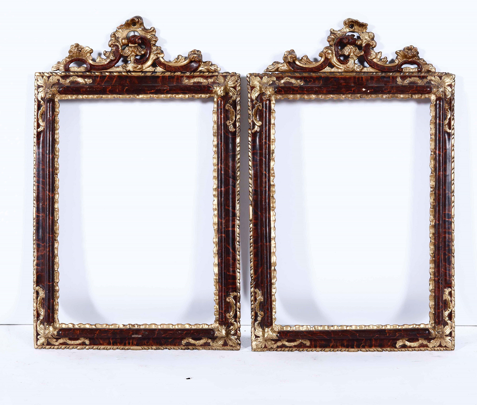 Coppia di cornici in legno intagliato, dorato e laccato a finto marmo. Veneto XVIII secolo