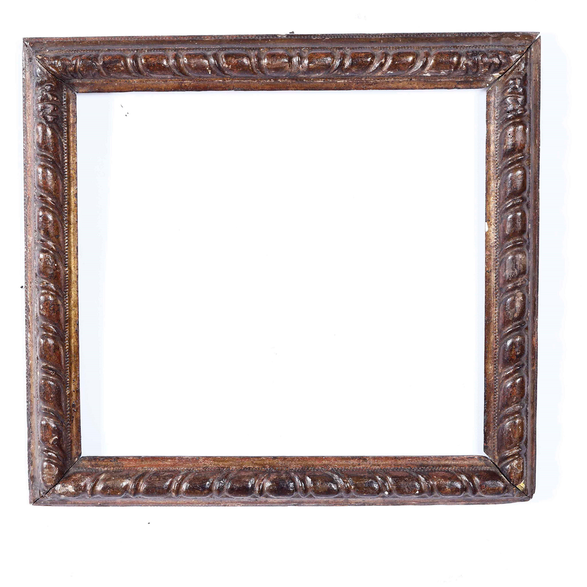 Cornice in legno intagliato e dorato, Piemonte XVIII secolo, battuta cm 37,5x41, W. 48,7 - H. 45,5 Cm