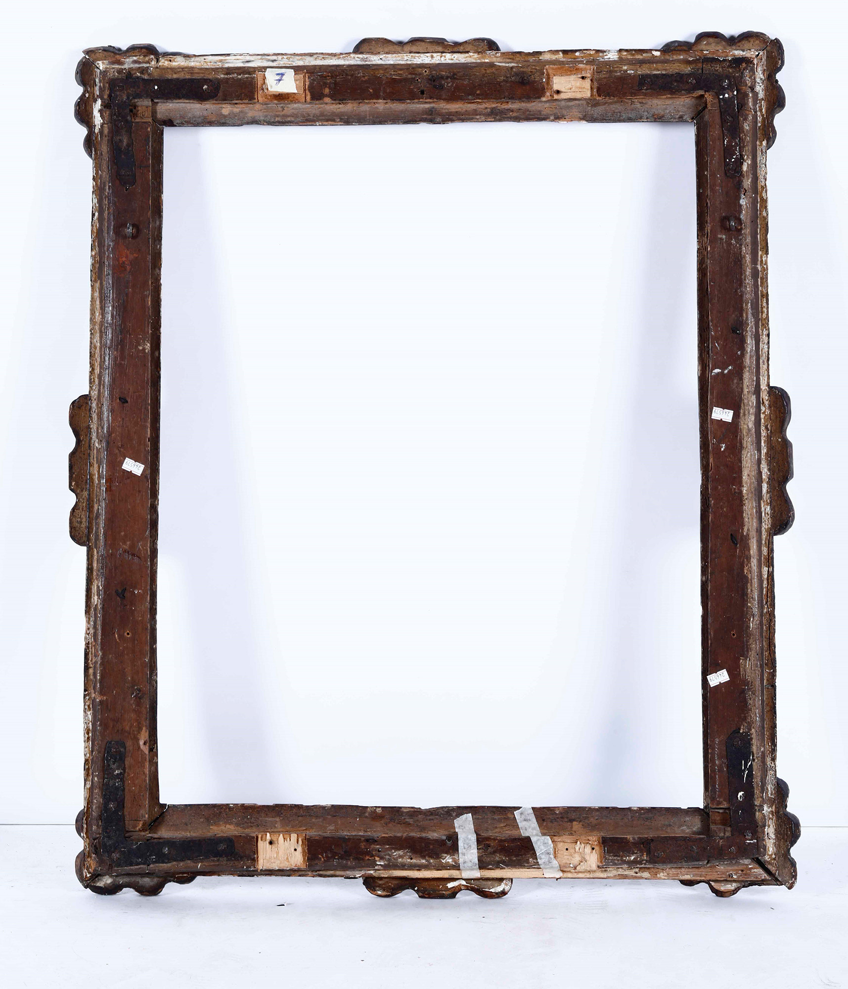 Cornice in legno intagliato e dorato a mecca. Veneto. XVIII secolo, cm 93x77,5 luce cm 72,5x58 battuta cm 78x59