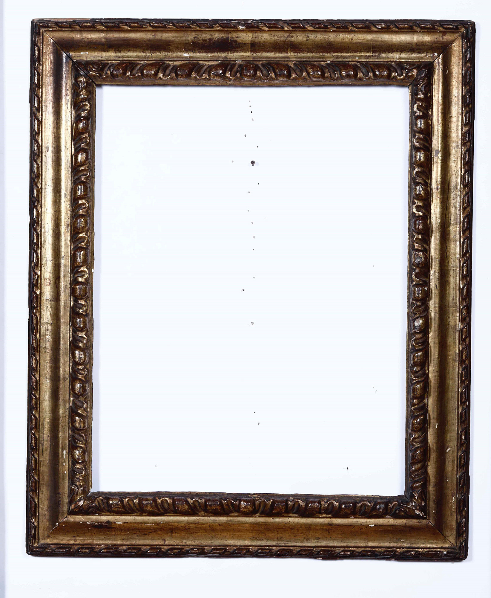 Cornice in legno intagliato e dorato, Piemonte XVII secolo, luce cm 69,5x53,5, esterno cm 92,5x76