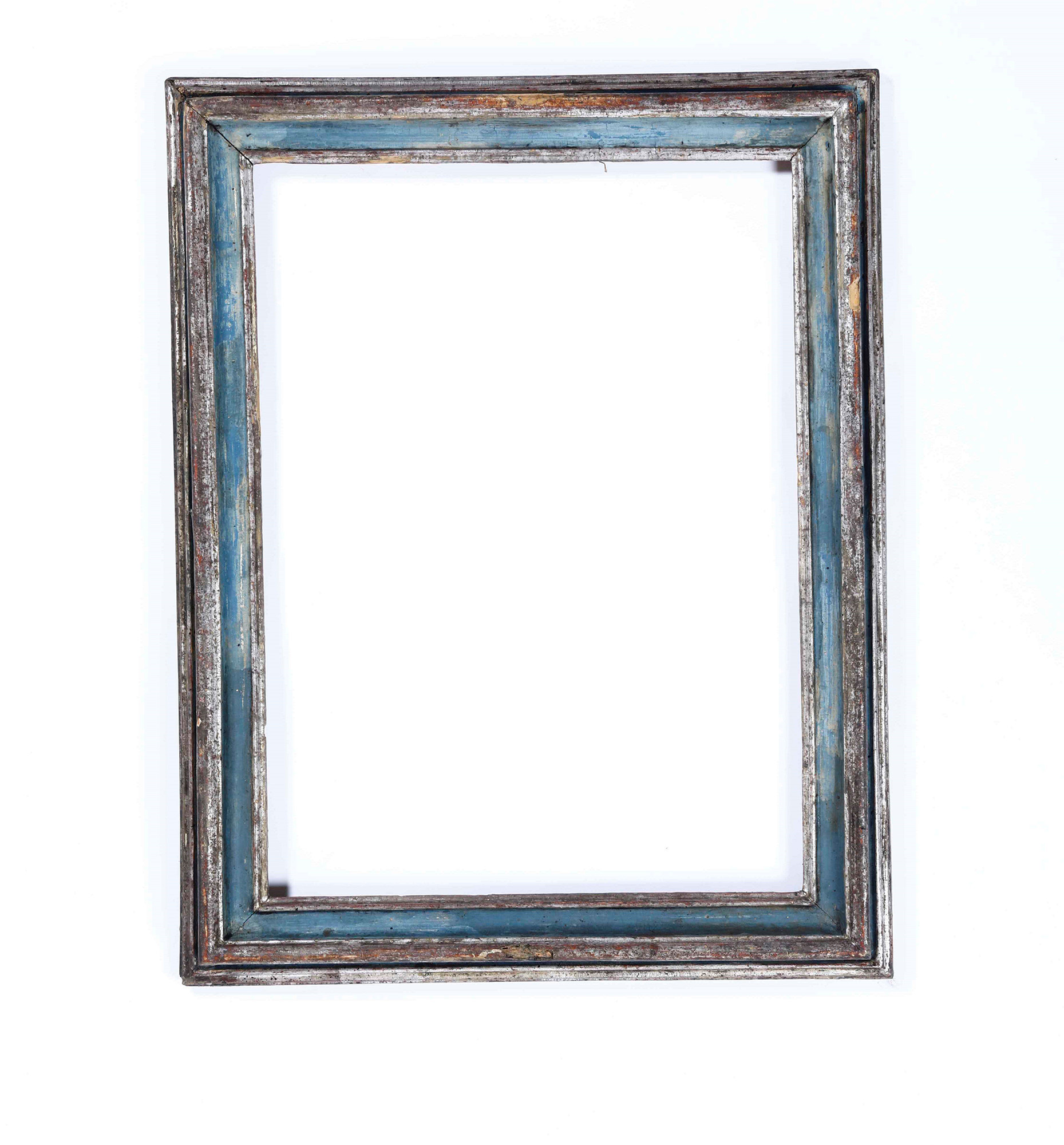 Cornice di sagoma Salvator Rosa in legno intagliato, laccato e argentato. Centro Italia XVIII secolo
