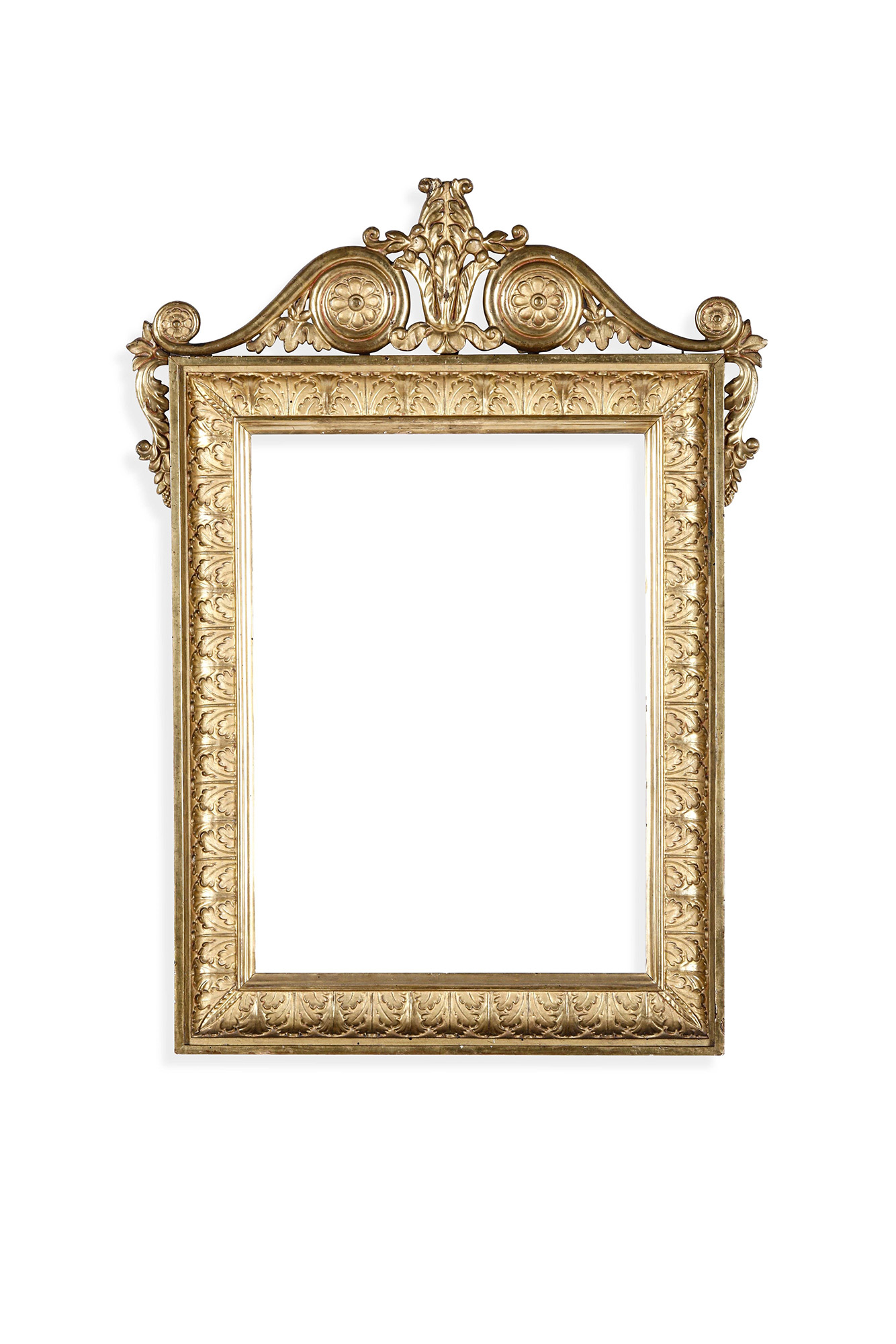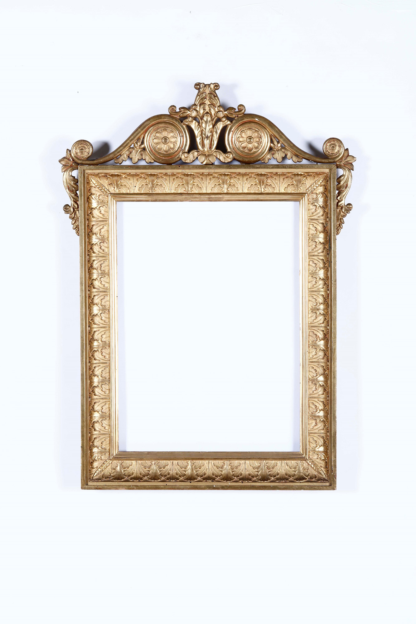 Cornice Impero in legno intagliato e dorato. italia o francia, XIX secolo, cm 91x65 luce cm 56x40