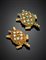 Spilla in oro giallo a guisa di tartaruga rifinita con diamanti e corallo firmata Cartier Paris, n° 019882, orefice e marchi di assaggio francesi, unita ad un'altra spilla di simile manifattura in diamanti e turchesi marcata 750 e n° 30612, complessivi g 25,61 circa, lungh. cm 3,60 circa. In scatola Les must de Cartier