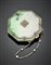 Portacipria ottagonale in giadeite scolpita rifinita in oro giallo, platino e diamanti a mezza rosetta con catenina di cm 13 circa in platino, perle e diamanti a mezza rosetta, specchio all'interno, lordi g 114,40 circa, lungh. cm 6,30 circa. Firmato Cartier Paris, n° 1170, orefice e marchi di assaggio francesi. (lievi difetti)