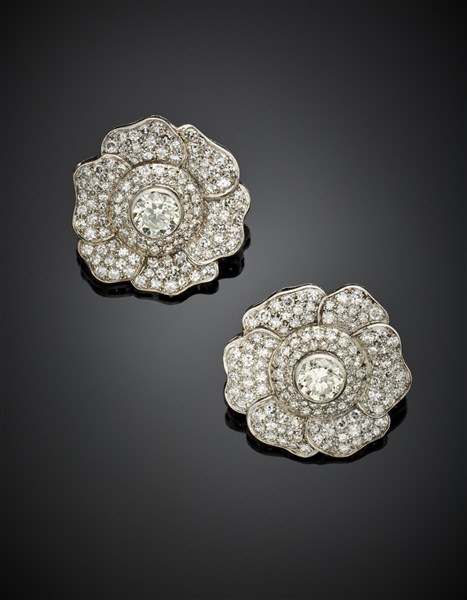Lot 86 | TIFFANY & CO Orecchini a fiore in oro bianco e diamanti a pavé, al centro un di