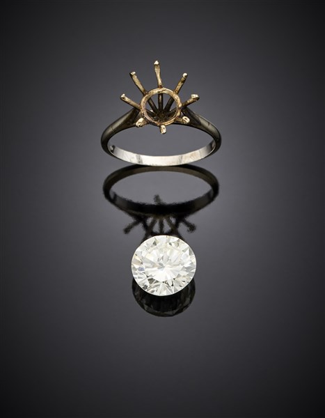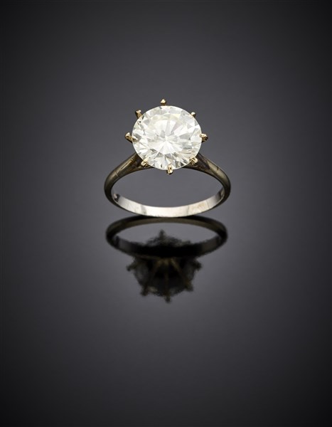 Lot 91 | Anello in oro bianco con diamante rotondo di ct. 3,65, g 2,94 circa misura 12/5