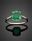 Anello in platino con smeraldo a cuscino di ct. 1,31 e piccoli diamanti a mezza