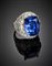 Anello in oro bianco con pavè di diamanti tondi e baguette a scalare e zaffiro