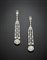 Orecchini pendenti articolati in platino e oro bianco con diamanti rotondi e ba