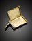Portasigarette in argento a nervature con pasta vitrea rossa cabochon sulla chiusura e scomparto per fiammiferi, cm 9,6x6,5x1,3 circa, dettagli in argento dorato, g 143,43 circa. Firmata Fabergé in cirillico, marcata AH per August Hollming, marchi russi di stato per l'argento con iniziali dell'assaggiatore Iakov Liapunov in vigore tra il 1899 e il 1904, 88 zolotnik**, numero di inventario 8143 e marchi francesi di importazione. (difetti)