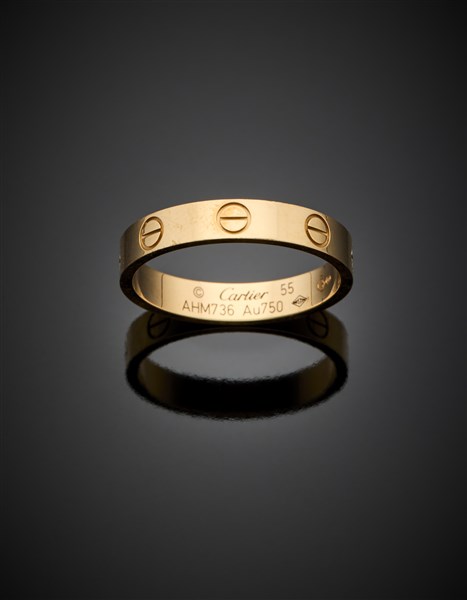 Anello "Love" in oro rosa, g 3,30 circa misura 15/55. Firmato Cartier, AHM736, 55, marchi francesi. Con garanzia originale