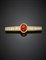 CUSI Spilla in oro giallo con diamanti a baguette e corallo rosso cabochon, dia