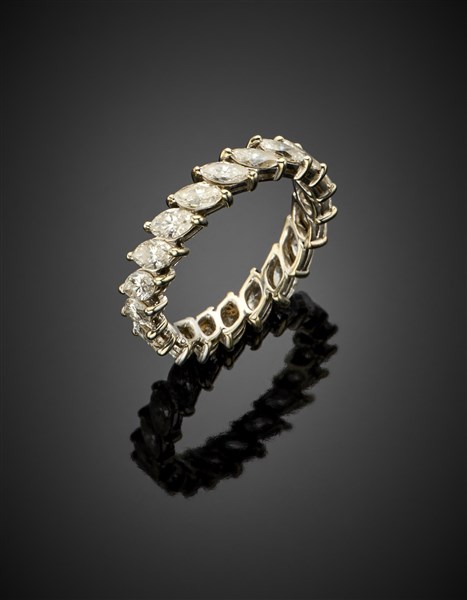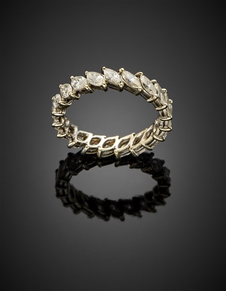 Anello eternity in oro bianco con diamanti a navette per complessivi ct. 2,00 c