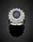 Anello in oro bianco con zaffiro ovale di ct. 2,45 circa e diamanti rotondi per