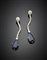 Orecchini pendenti in platino e oro giallo con diamanti per complessivi ct. 0,95 circa e zaffiri a goccia per complessivi ct. 6,50 circa, g 6,40 circa, lungh. cm 4,50 circa. Marchi francesi di assaggio, n° 54099.
