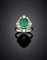 Anello in oro bianco con smeraldo ottagonale di ct. 4,00 circa e diamanti roton