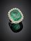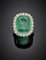 Anello in oro bianco con diamanti a contornare uno smeraldo a cuscino di ct. 5,