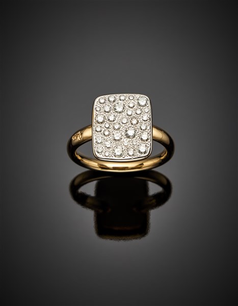 POMELLATO Anello in oro rosa e bianco con pavé di diamanti rotondi, g 6,28 circ