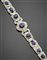 Bracciale in oro e platino con diamanti old mine per complessivi ct. 4,50 circa e quattordici zaffiri ovali e a cuscino per complessivi ct. 12,90 circa, g 32,27 circa, lungh. cm 17,50 circa.