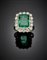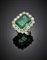 Anello in oro bianco con smeraldo ottagonale di ct. 5,00 circa e diamanti roton