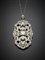 Broche/pendente in oro bianco con diamanti rotondi e baguette, al centro un dia