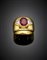 Anello in oro giallo con rubino ovale di ct. 2,75 circa e due diamanti triangol