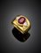 Lot 282 | Anello in oro giallo con rubino ovale di ct. 2,75 circa e due diamanti triangol