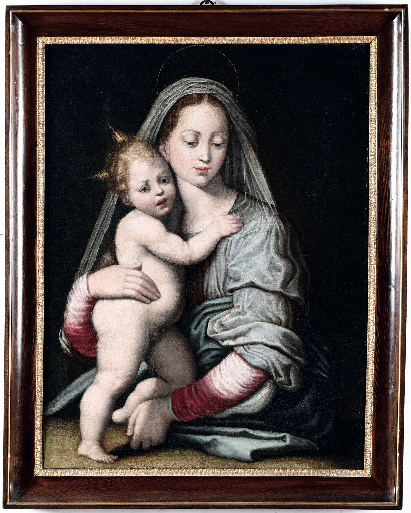 Madonna col Bambino Scuola lombarda del XVI secolo, olio su tela, Largh. 71 - Alt. 93 cm