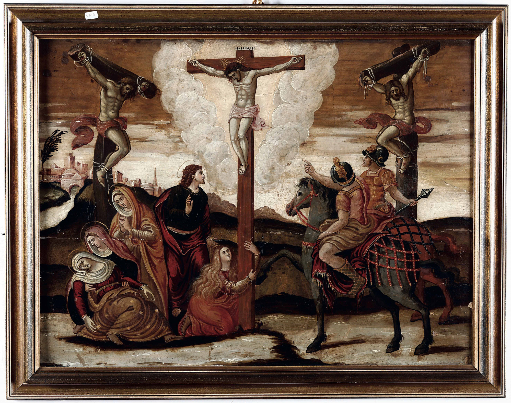 Deposizione Scuola veneto cretese del XVI-XVII secolo, olio su tavola, Largh. 60 - Alt. 79 cm