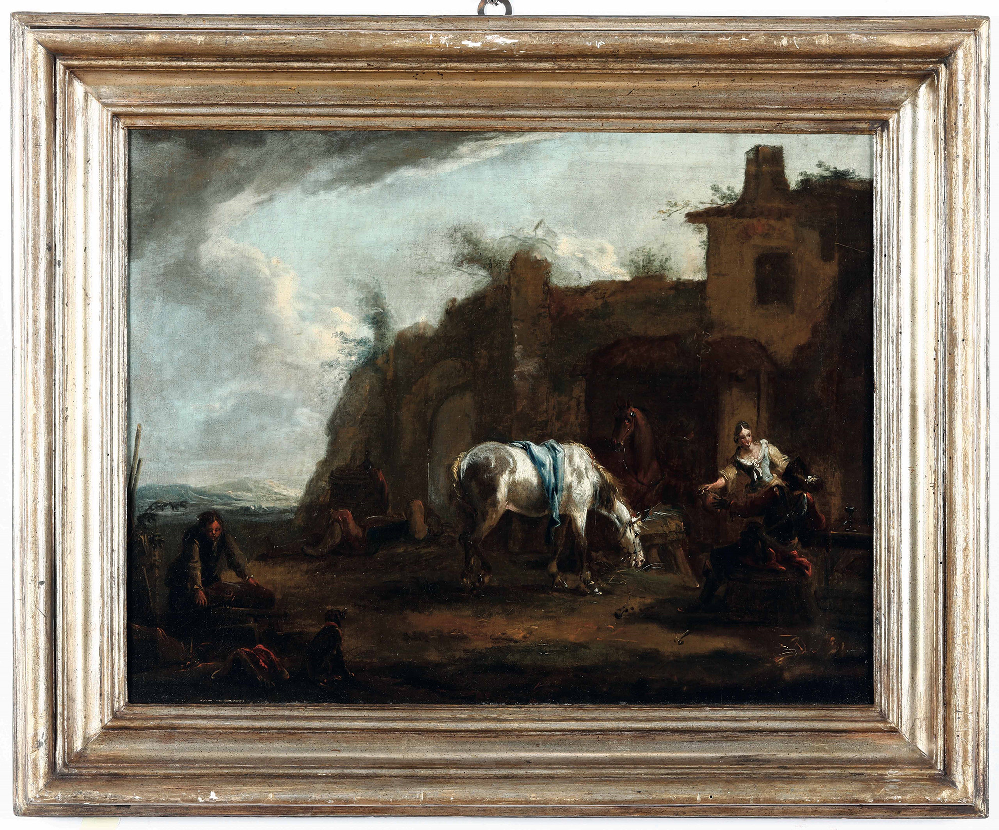 Augustus Querfurt (1696 Wolfenbüttel -1761 Vienna), Sosta di cavalieri, olio su tela, W. 56 - H. 42 Cm, Expertise: Prof. F. Arisi