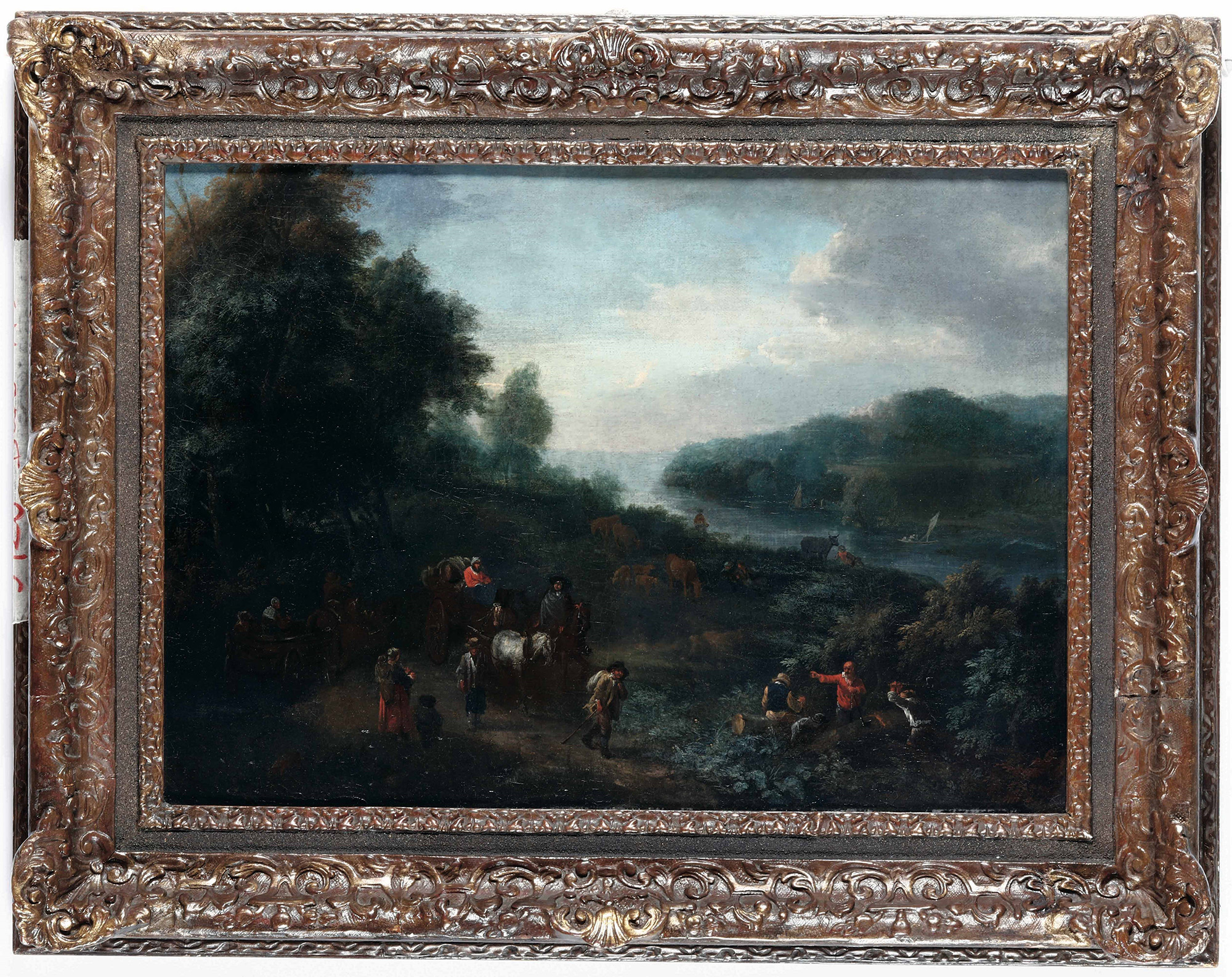 Paesaggio animato da contadini che ritornano dal mercato Adriaen Frans Boudenwyns (1644 - 1711) e Peeter Bout (1658-1719)