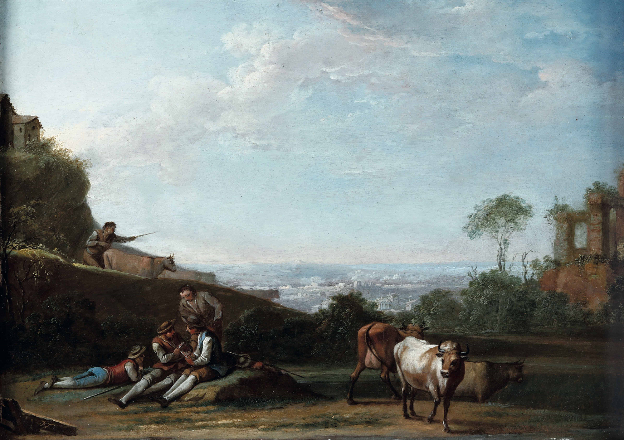 Franz de Paula Ferg (1689 Vienna-1740 Londra), Paesaggio con pastori a riposo