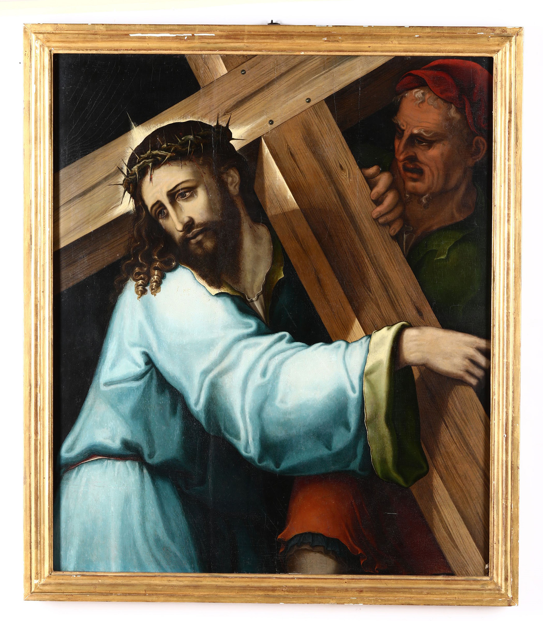 Cristo portacroce Scuola del XVI secolo, olio su tavola, W. 80 - H. 95,5 cm