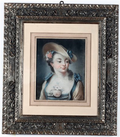 Tomaso Bugoni (?-1767 Venezia), Ritratto femminle, pastello su carta, W. 310 - H. 400 mm, Expertise: Prof. F. Arisi