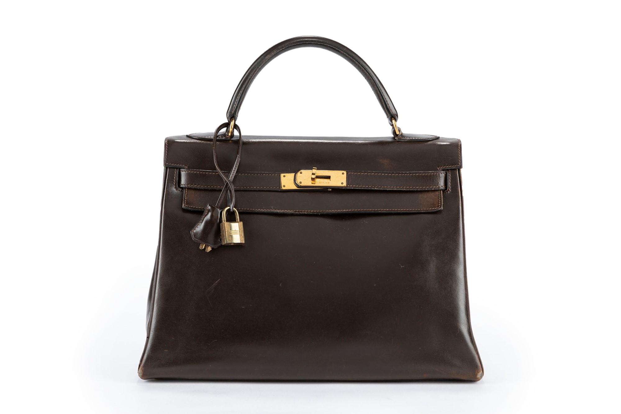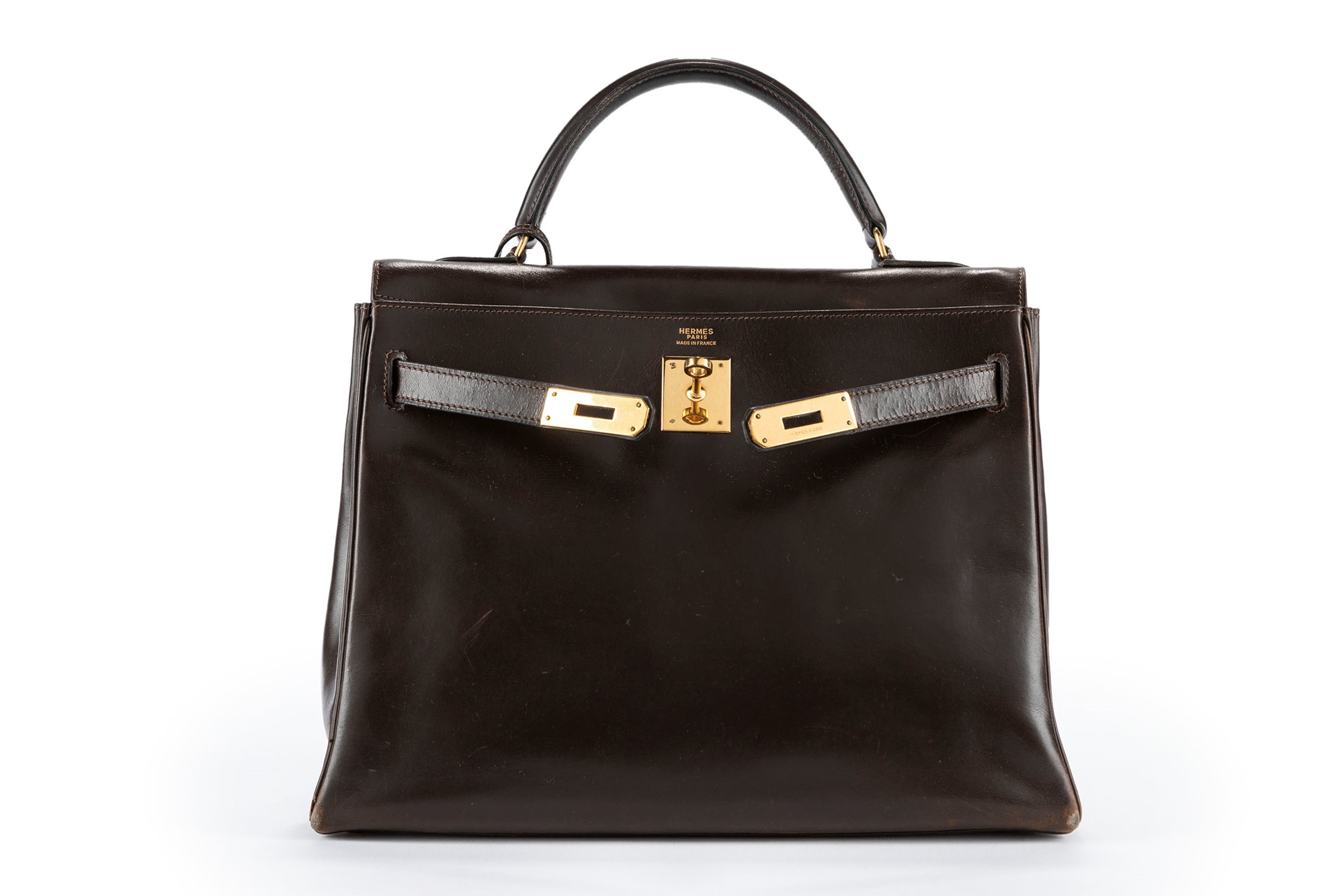 in pelle color testa di moro, dettagli in metallo dorato (difetti).