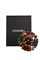 in metalo dorato, strass e paste vitree in colori diversi, inserti in pelle color nero, dm cm 7 con sacchetto e scatola.