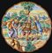 Coppia di piatti in maiolica di Castelli, ceramista G. Giunti, , diametro cm 36, decorati con scene storiche e bibliche; profilo lievemente sagomato sottolineato in ocra. Firmati al verso G. Giunti