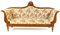 Divano in noce, XIX secolo, , cm 120x220x62, con schienale sagomato centrato da valva baccellata e sponde dei braccioli svasate, imbottito e rivestito in tessuto a fiori