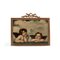 Placchetta rettangolare in smalto, XIX secolo, , cm 9x13 - con la cornice: cm 12x14,3, raffigurante i due angeli pensosi della Madonna Sistina di Raffaello; cornice in metallo dorato sormontata da un tralcio legato da un fiocco