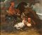 Giovanni Crivelli detto il Crivellino (attribuito) (1:Principale) (Parma, fine del XVII - Parma, 1760) Gallo e galline olio su tela cm 73x88 - con la cornice: cm 95x110
