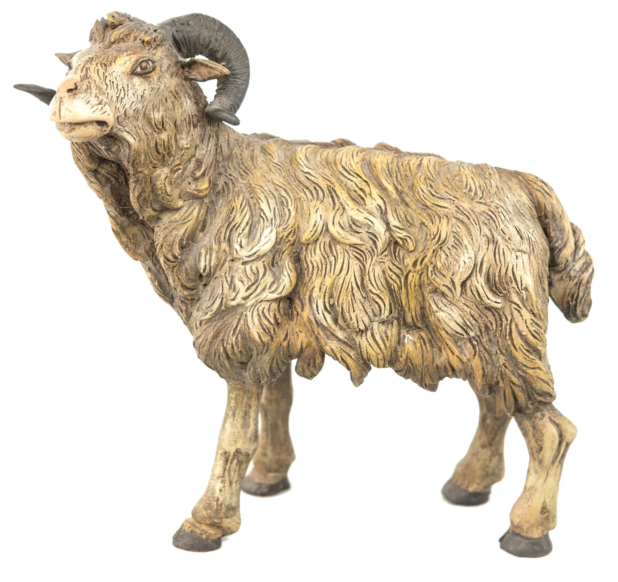 Montone in terracotta, XIX secolo, cm 17x18x6 ca., occhi in vetro