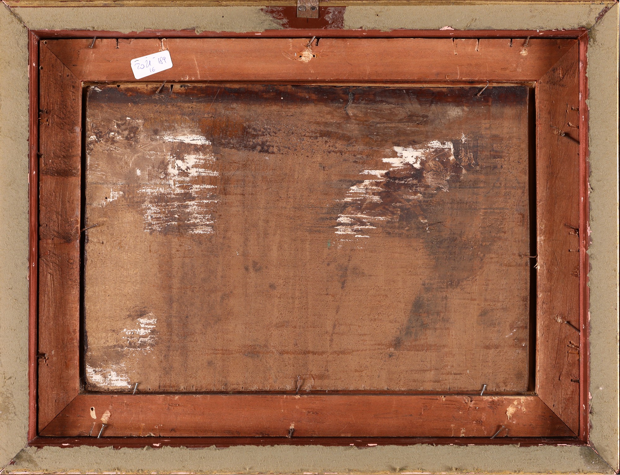 Carrillo, Achille (Avellino, 1818 - ?) Paesaggio con figure - Cava dei Tirreni olio su tavola cm 21,5x31 - con la cornice: cm 32x42